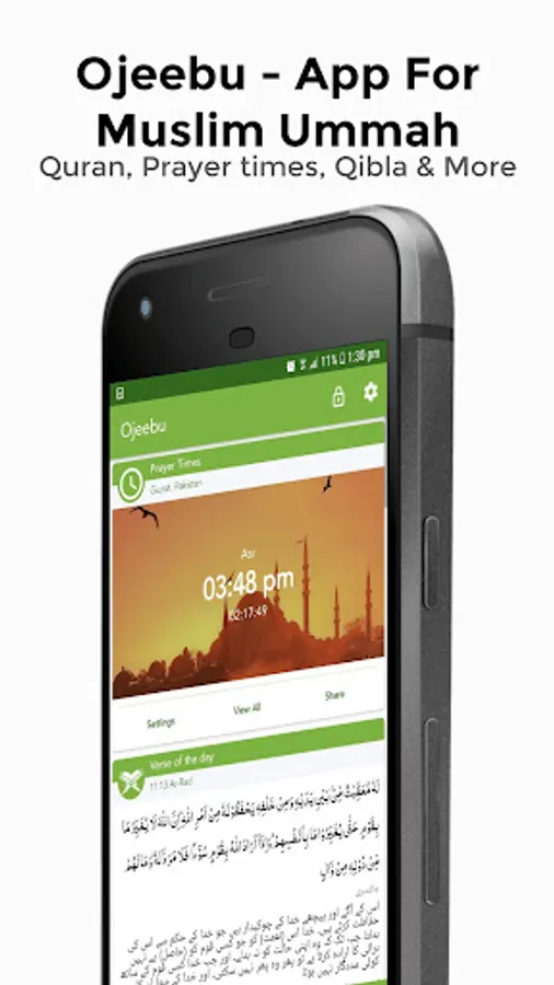 Best and ultimate Muslim Ummah App, with Free offline mp3 Quran recitation in English & Urdu, Prayer times & Adhan, Qibla direction, Supplications, Prayers, Duaas, Esal-e-Sawab, Tasbih, Greeting Cards, Asma-ul-Husna, Daily Quran Verse, Islamic Quotes and much more.