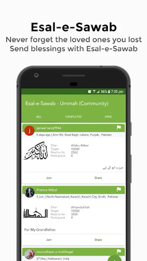 ✓ Esal-e-Sawab for the loved ones we lost. Send blessings to the deceased and join others to send rewards to ones who passed away.