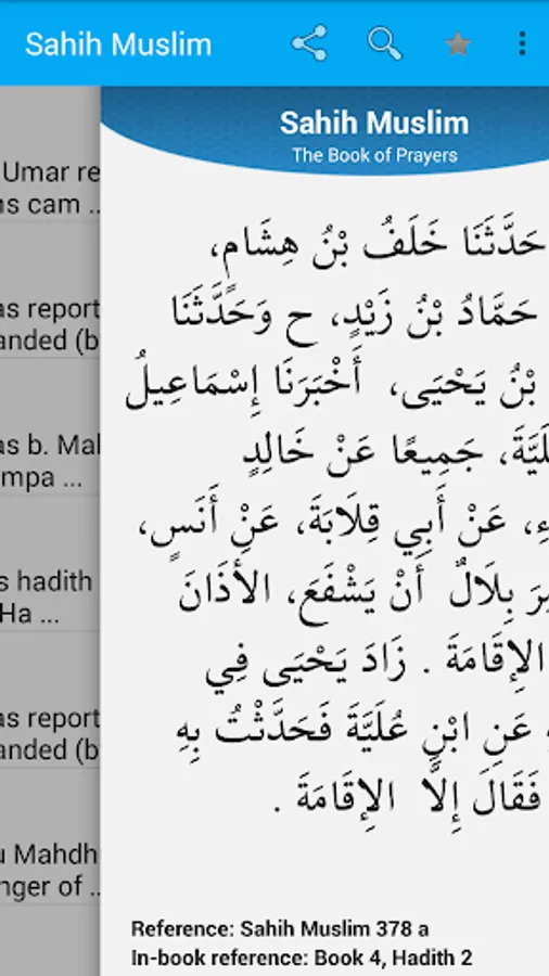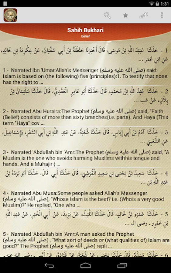 Hadith Collection for Android is an ultimate all in one collection of Hadith of Prophet Muhammad (محمد (صلى الله عليه و سلم (Peace Be Upon Him). The app contains Arabic mattan and translations in different languages of most accepted and authentic Hadith books including Sahih Bukhari, Sahih Muslim, Sunan Abu Dawud,Malik's Muwatta and many others.