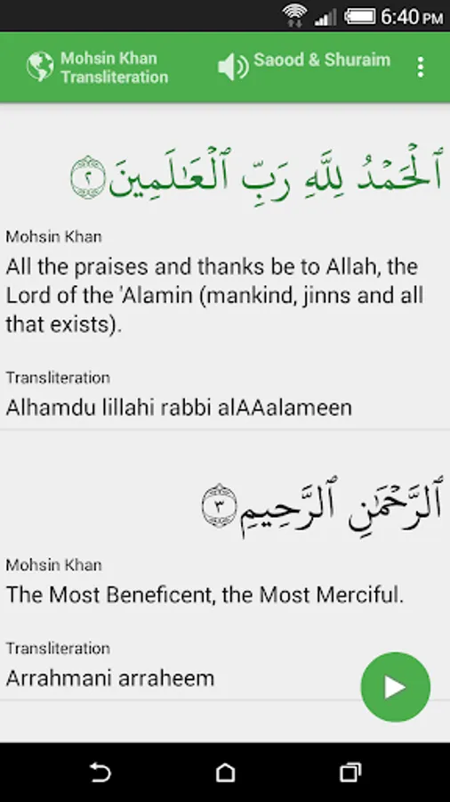 ★ Choose from many different translations of Quran. (See Supported Translations section below)