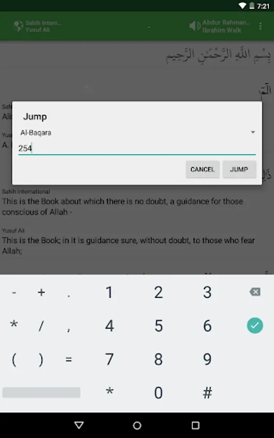 ★ Easily jump to any Verse of the in any Surah of Quran.