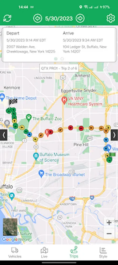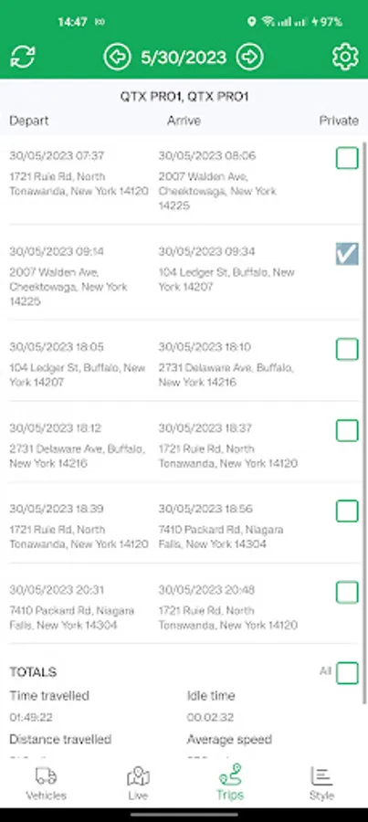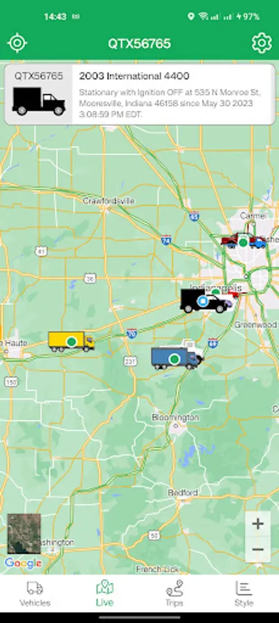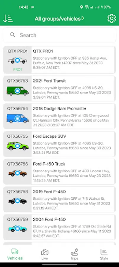 1. Vehicle list, to give a summary of all the vehicles to which the user has access, and their present location.