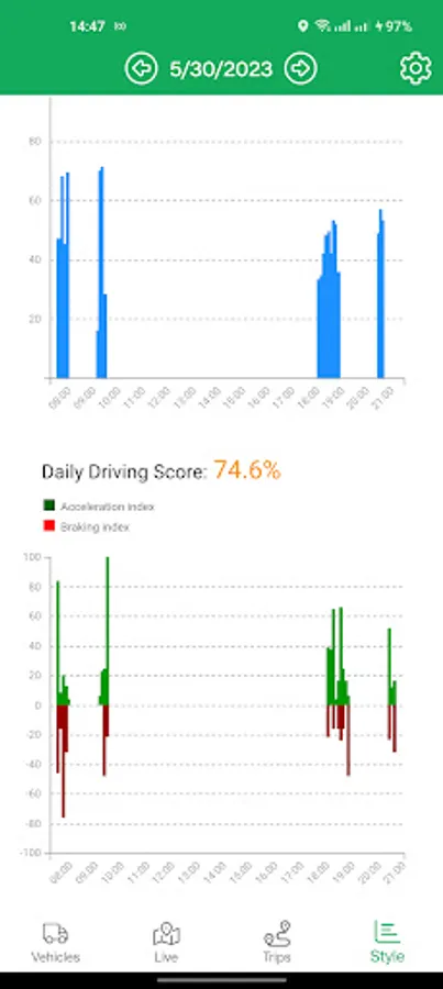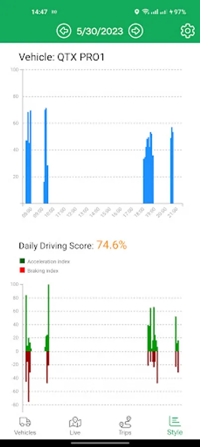 4. Driving Style, for Infoplus customers a daily driving style report covering speed and acceleration and braking behaviour.