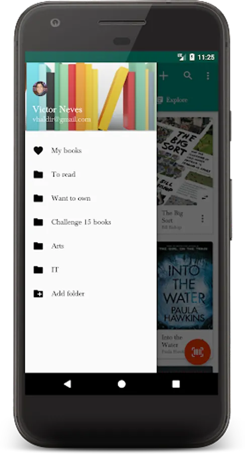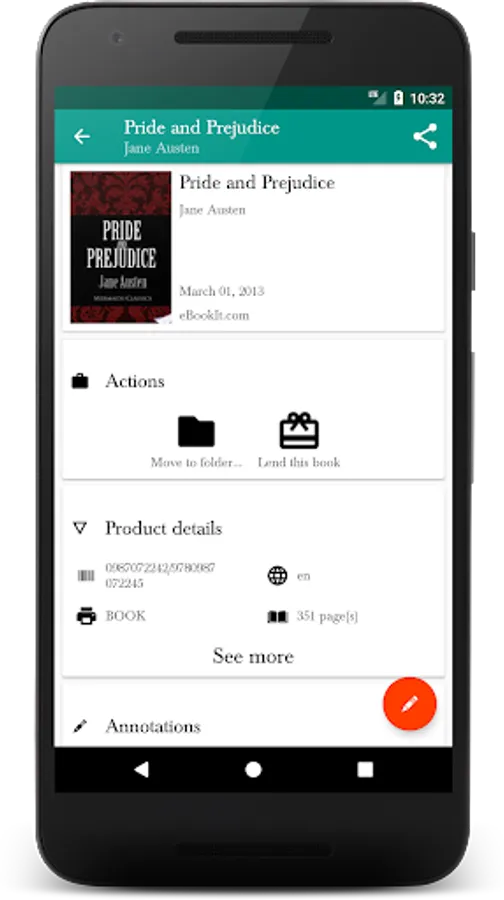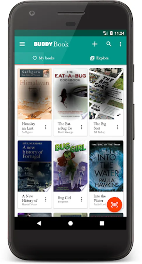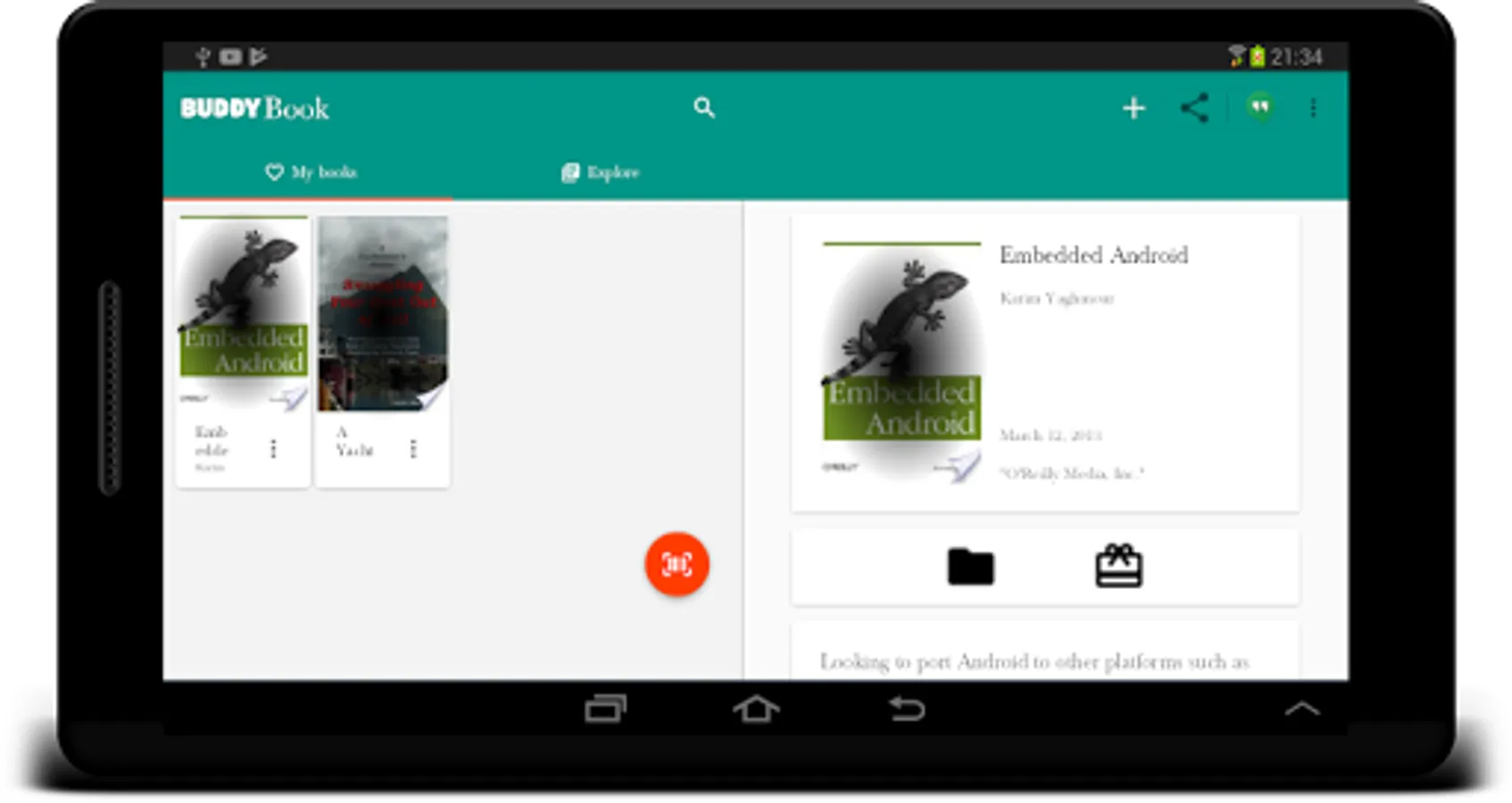 Buddybook gives you an easy way to add new books by simpling searching by text, scanning ISBN (barcode), or by creating your own custom book. Once your books are in, arrange them in folders, mark them as lent. See cover art and descriptions and much much more.