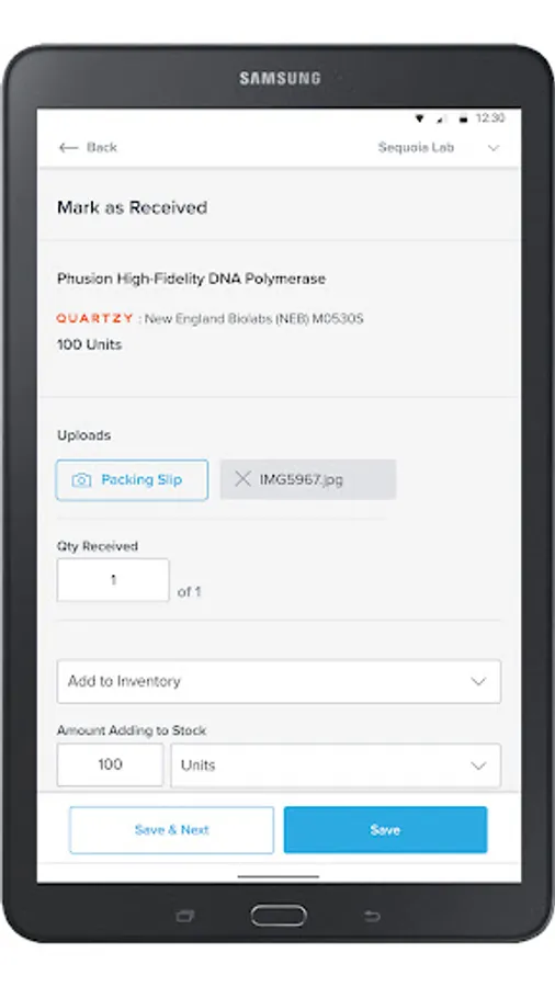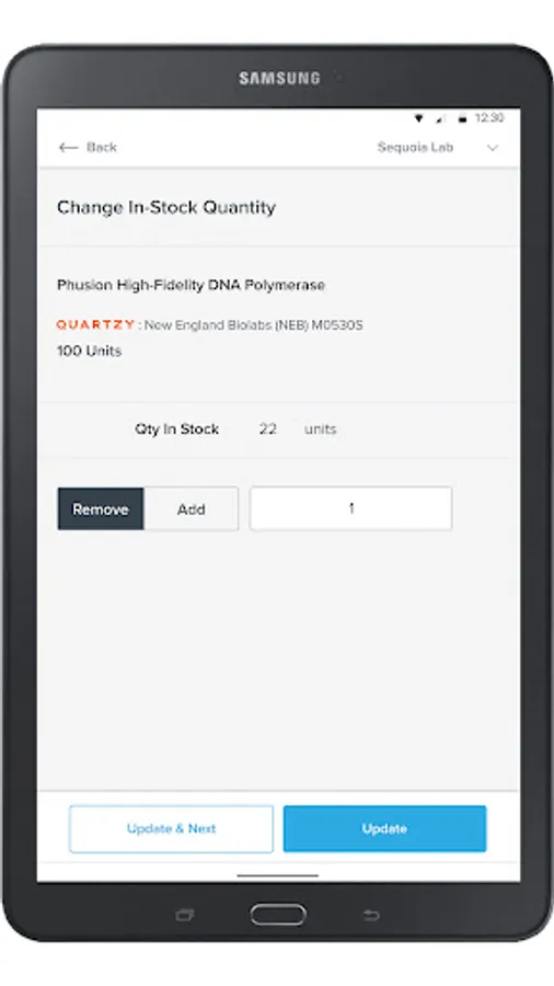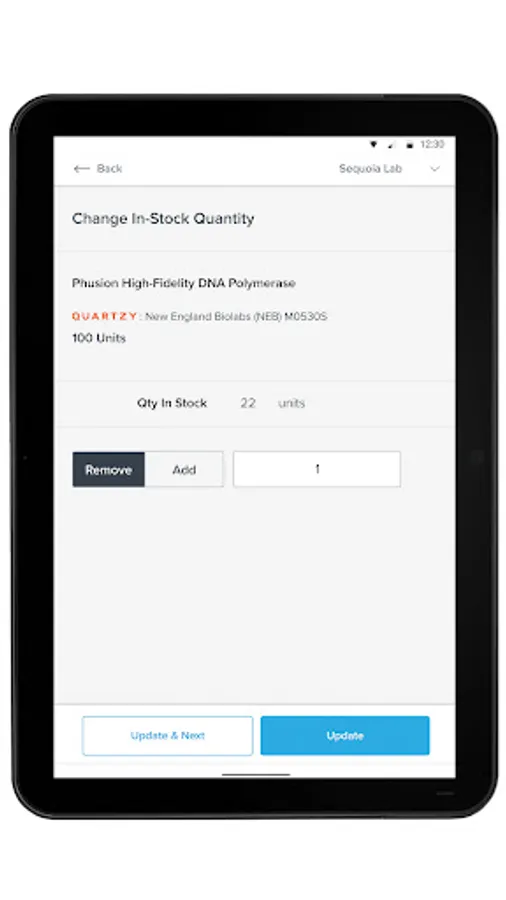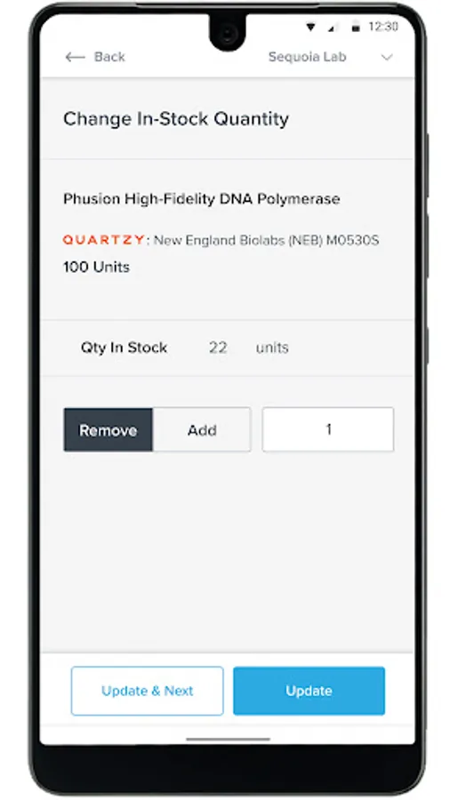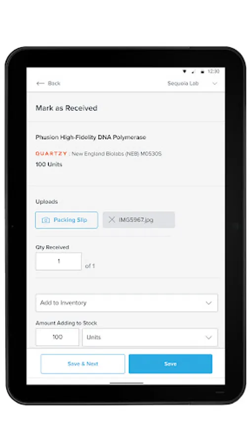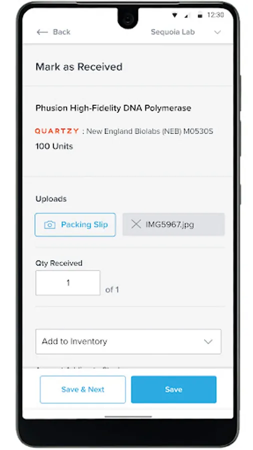 Quartzy Mobile App allows everyone in the lab to track inventory, creating a more up-to-date view of what is available in your lab, so supplies can be ordered in time and no experiment is delayed.