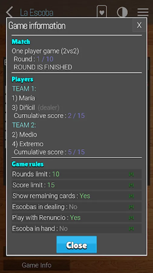 It's the most popular cards game in Spain, Argentina, Colombia, Uruguay, etc. With very simple rules the goal is to make tricks of 15-sum cards. Collecting the most cards to score.