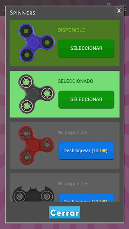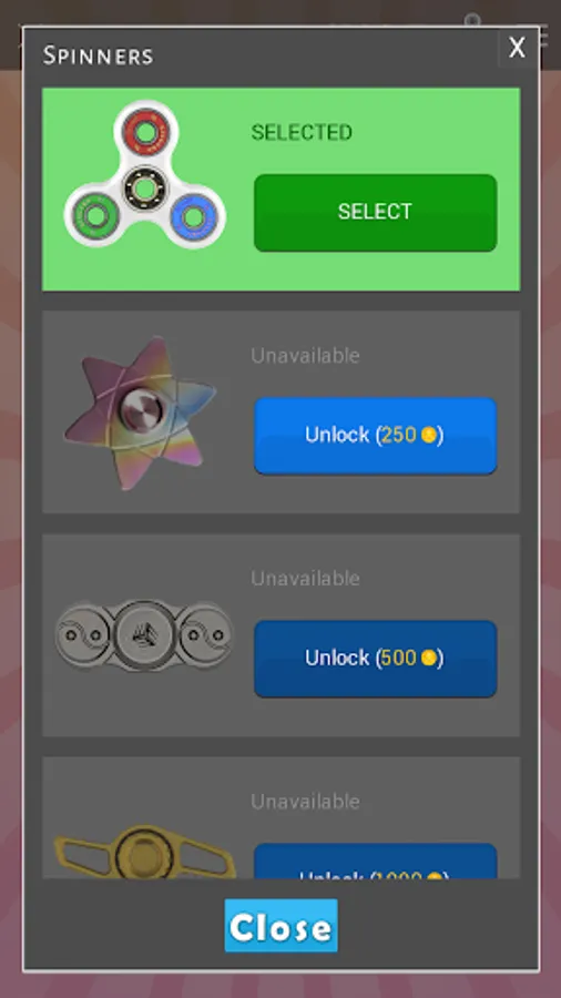 Collect all the different Fidget Spinners. Some will have to be unlocked using coins, but don't worry, you can earn coins every day by rolling the lucky wheel or playing with your spinner.