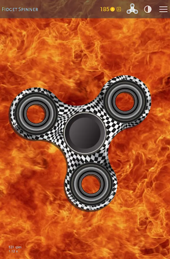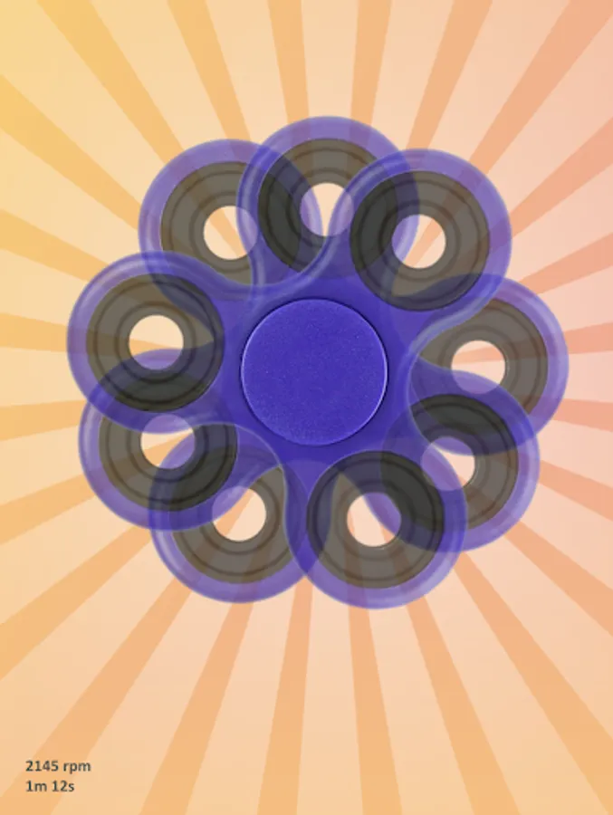 Relax yourself turning and moving the hand spinner. Inlcudes very realistic effects of sound and vibration. Try to beat your best time or rpm (revolutions per minute)!