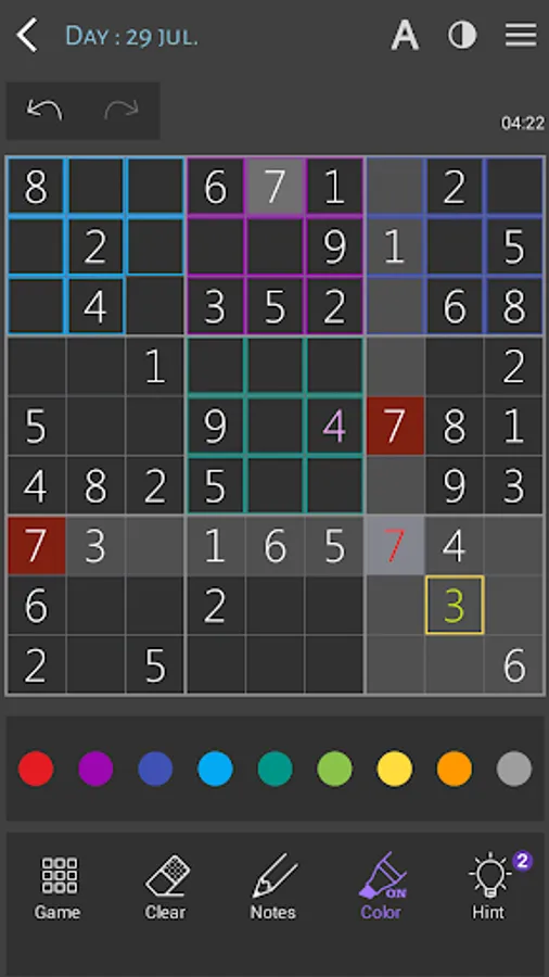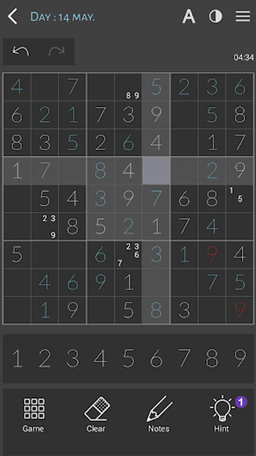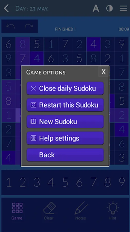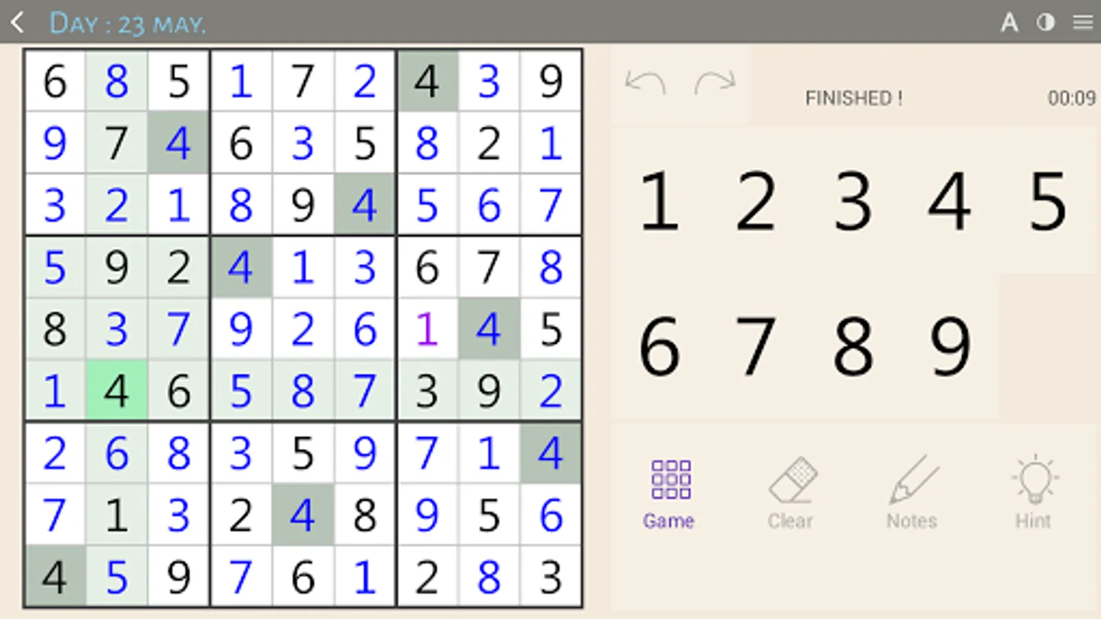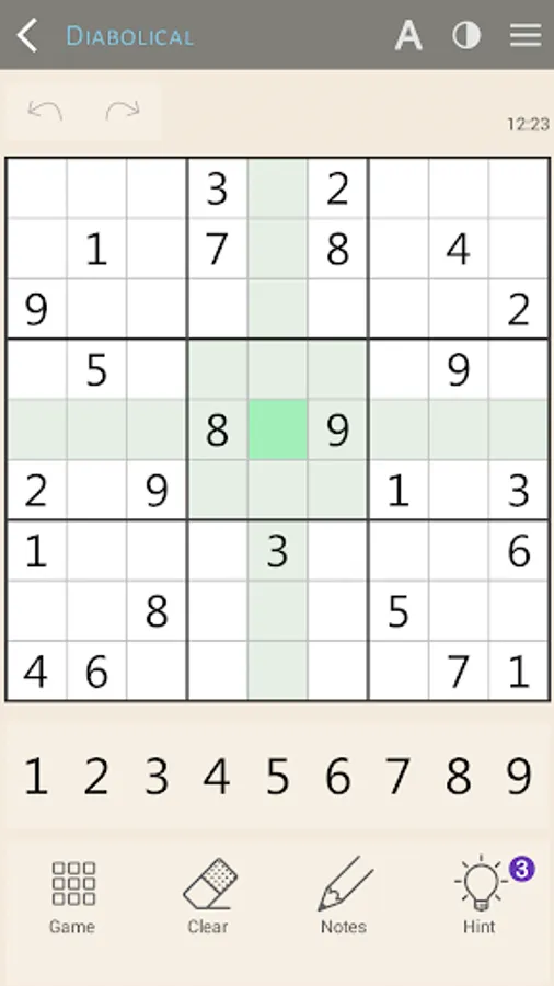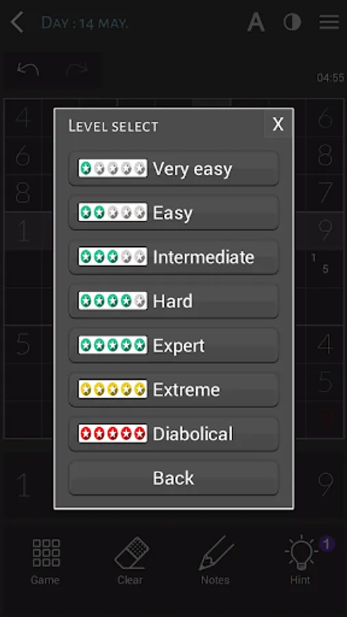◉ 3 - Intermediate : You will be able to finish Intermediate level games using basic techniques: Hidden singles and Naked singles.