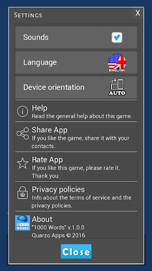 * Play or mute the sounds.