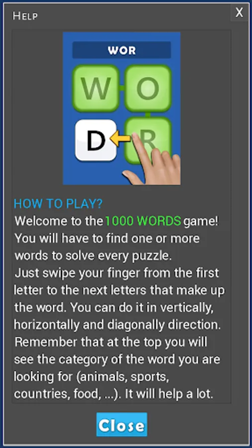 Remember that at the top you will see the category of the word you are looking for (animals, sports, countries, food, ...). It will help a lot.