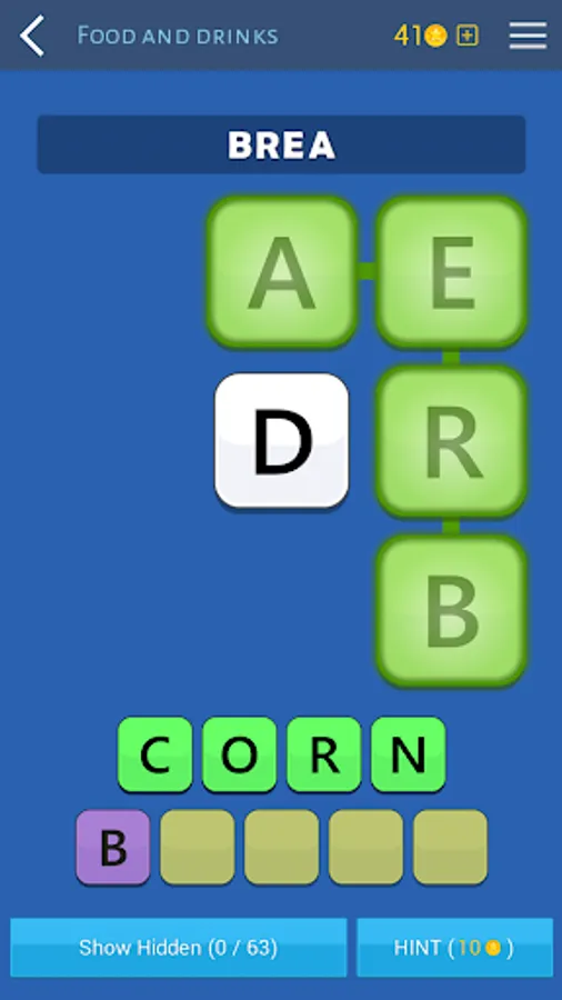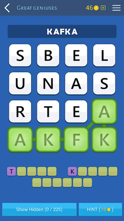 If you can't find a word, don't worry, you can use hints that will show you the first letters of each word.