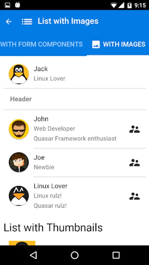 Test your Quasar App directly on your phone with hot reload. Also get a glimpse of what Quasar Framework can do.