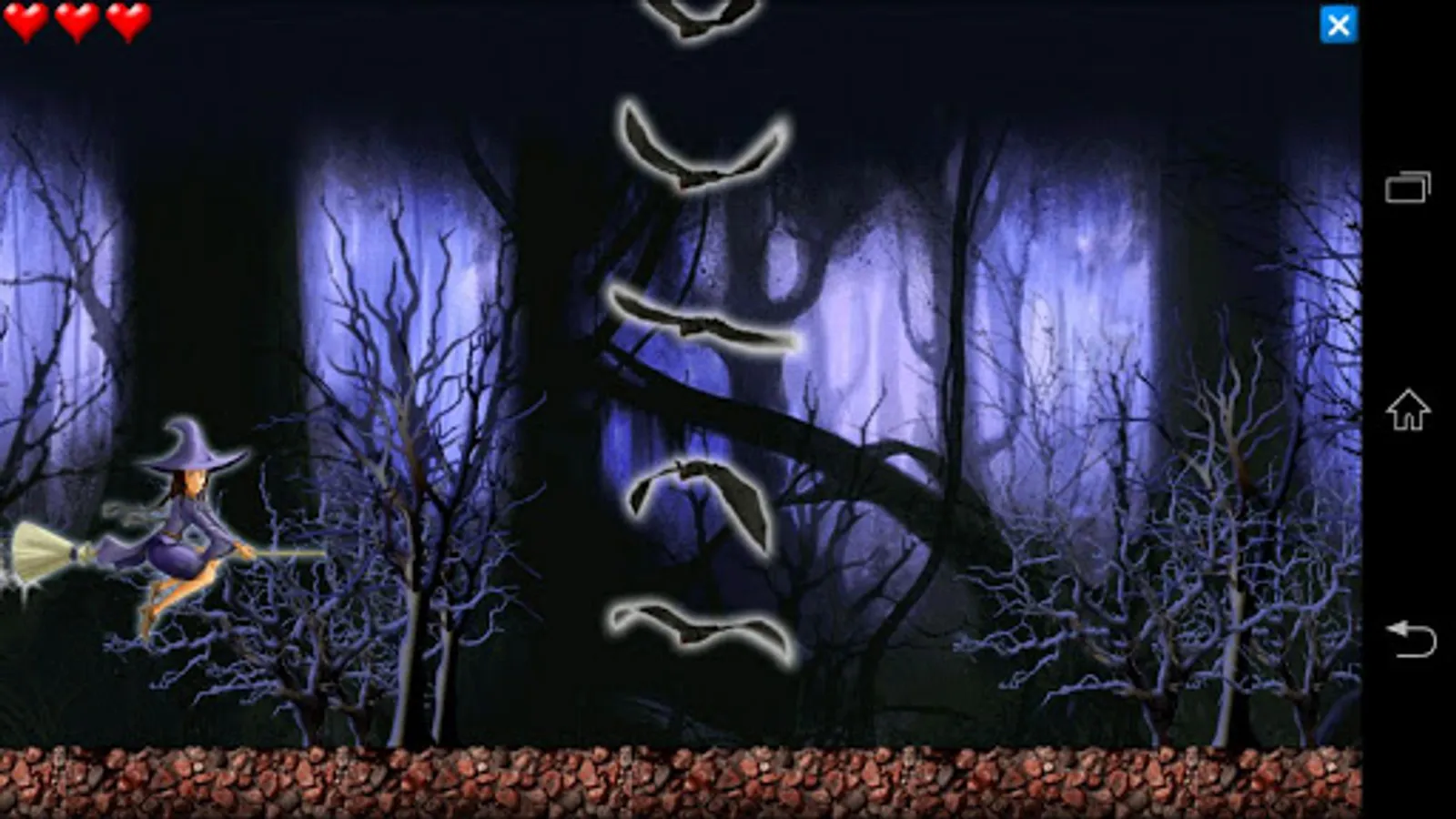 Tilt the phone to control the witch. You can calibrate your device in the Settings menu to improve accuracy.