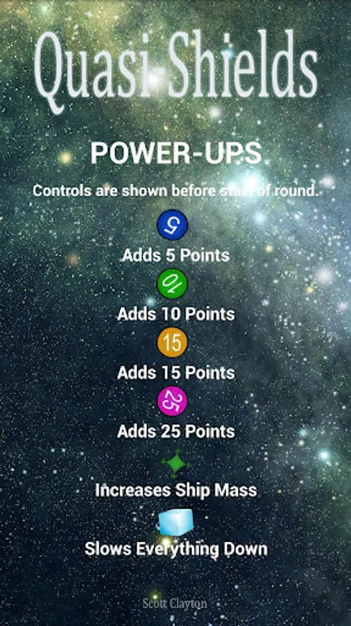 Lower your shields temporarily to collect power-ups which can boost your score, slow asteroids down, raise your ship's mass, and more.