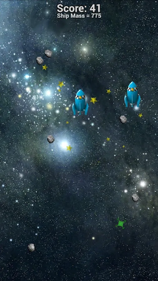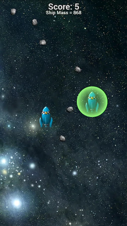 Prevent your ships from being destroyed by following them with your fingers on your touch screen. Be careful, when you remove your fingers the shields go down and you can be destroyed by an asteroid! As your ships move, their mass decreases so that they begin to move and bounce faster and faster.