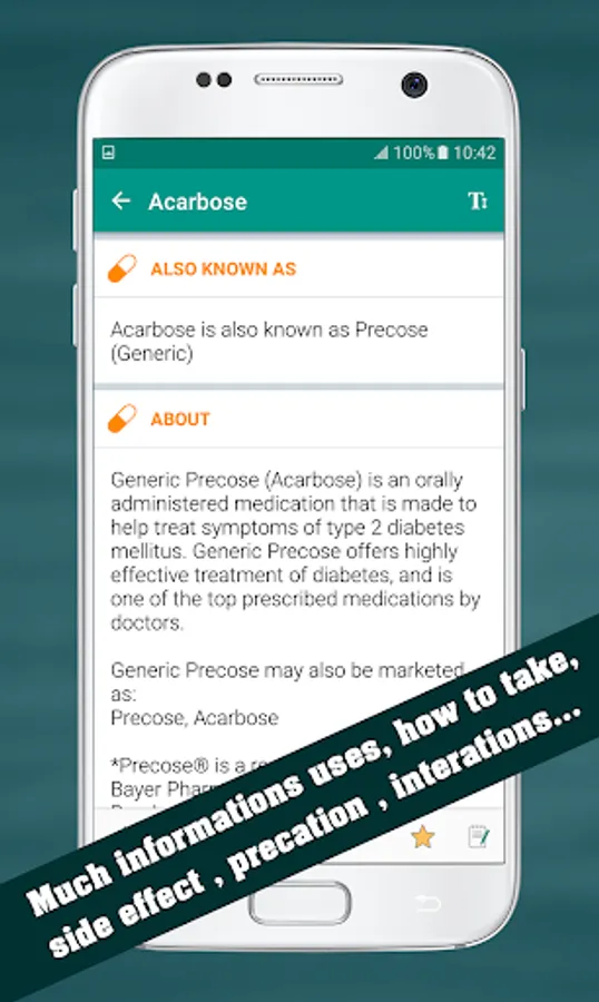 Drug Dictionary is a medical hand book that provides all information about drugs used for medication: uses, dosage, how to take, side effects, precautions, drug interactions, missed dose and storage.