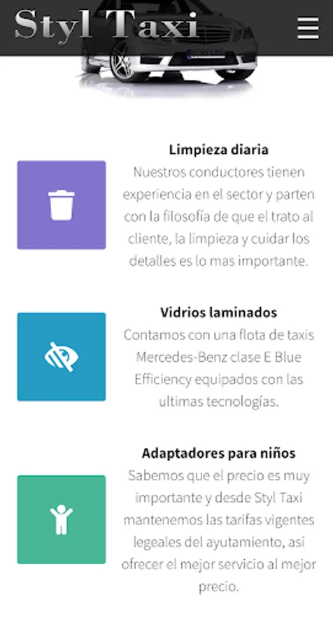 In StylTaxi we have a fleet of Mercedes-Benz E-Class Blue Efficiency taxis equipped with the latest technologies, drivers with experience in the sector and maintaining the current rates of the town hall in order to offer the best service at the best price.