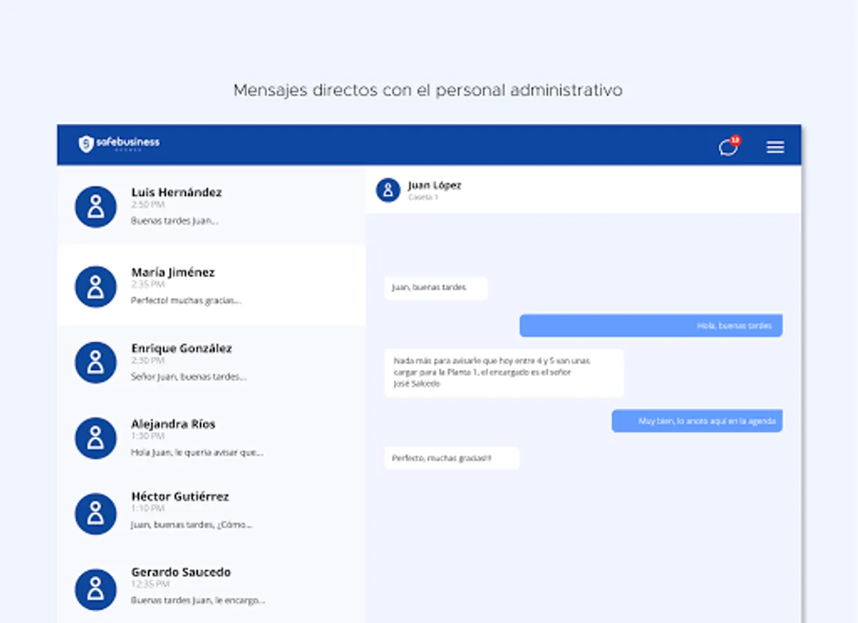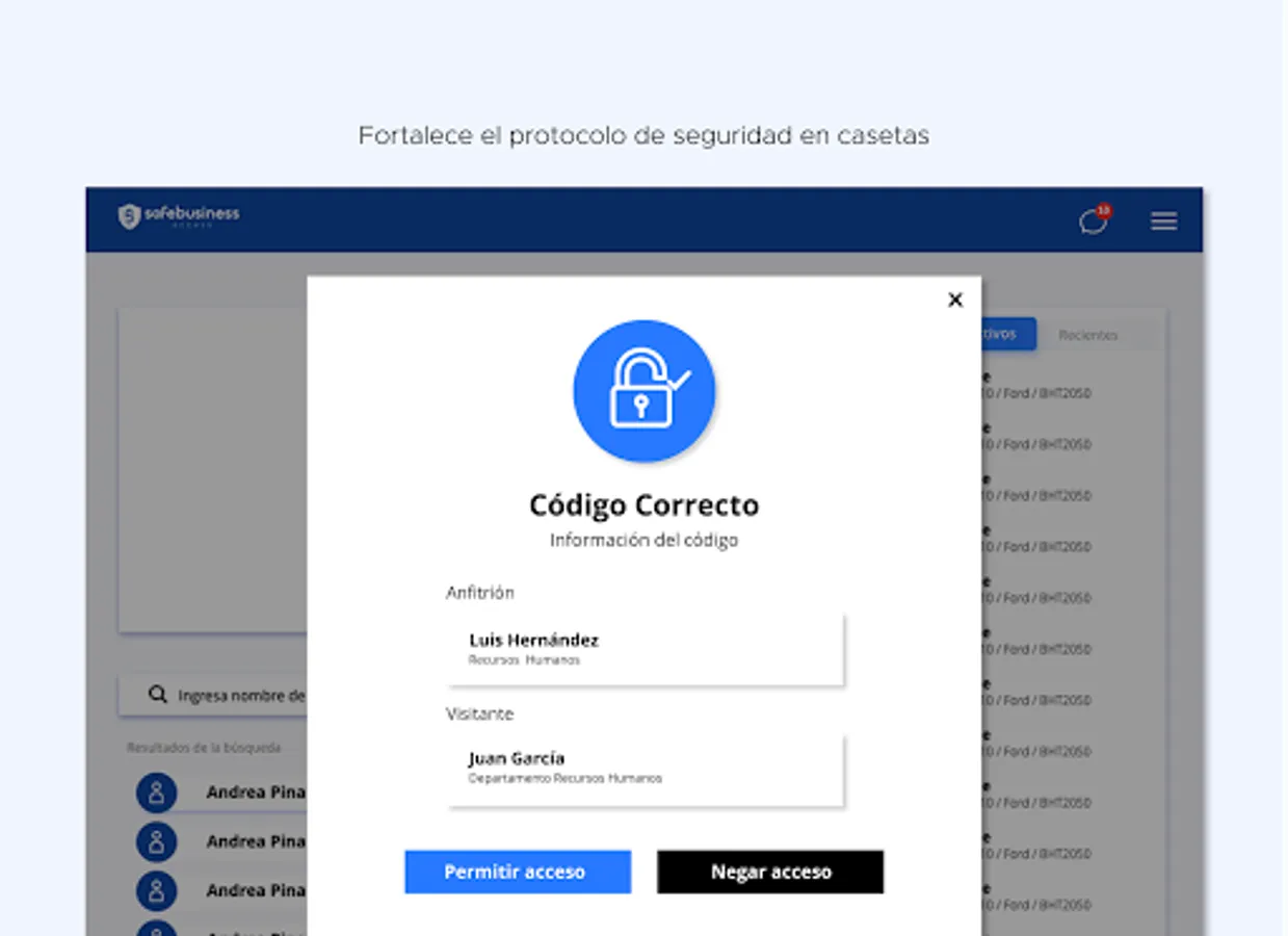 Con SafeBusinessAccess el personal de seguridad de tu complejo o nave industrial logrará un enlace eficiente entre los usuarios y personal de administración a través de una tablet con acceso a internet así mismo el personal de seguridad podrá visualizar, gestionar y controlar de mejor manera sus actividades claves buscando siempre la veracidad de la información y el accionar en tiempo real.