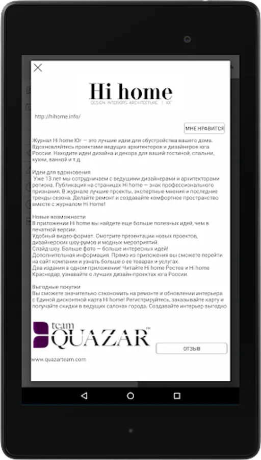 - Two editions in one app! Read Hi home Rostov and Hi home Krasnodar, learn about the best design projects in the south of Russia.