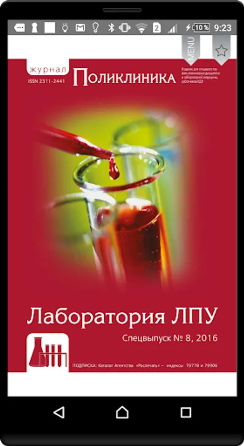 The magazine is designed for practitioners of all specialties of the medical organizations in Russia. Shoots themed special issues for Neurology, Psychiatry, Rheumatology, Endocrinology, Cardiology, Diseases Respiratory, Infectious Diseases, Gastroenterology, Hepatology, disinfection and epidemiology, prevention IHS, Laboratory LPU, on equipment of medical organizations, radiological and functional diagnostics, as well as non physicians and family doctors and other aspects of health care and pharmaceuticals.