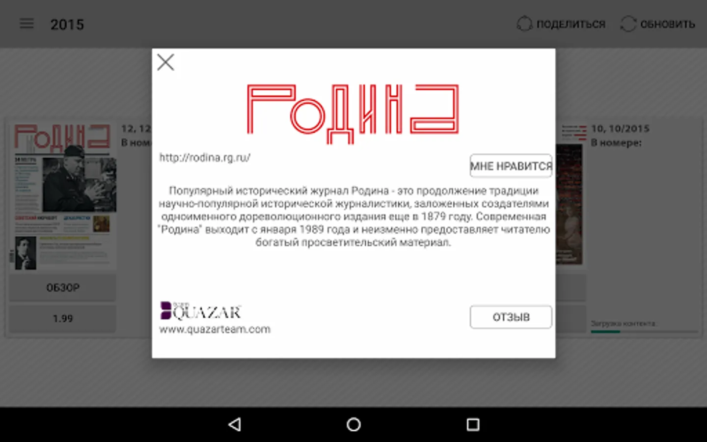 The historic popular science magazine Rodina, a 140-page full-color glossy magazine, illustrated with rare and unique photographs and other graphic materials, is addressed not only to professional historians, but to anyone interested in national and world history.
