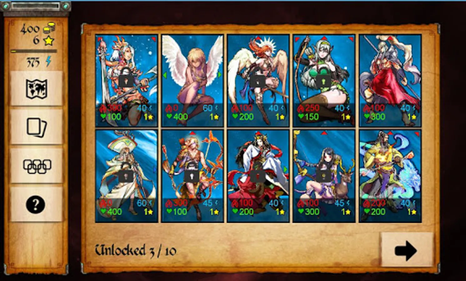 Choose from 40 different cards with different abilities defeat creatures in every battle. Win new cards or buy unlocked cards to make your deck even stronger. Cards will level-up the more you use them in battle. Lead your cards to victory by supporting your cards ingame in several challanging battles.