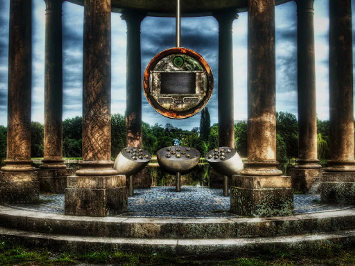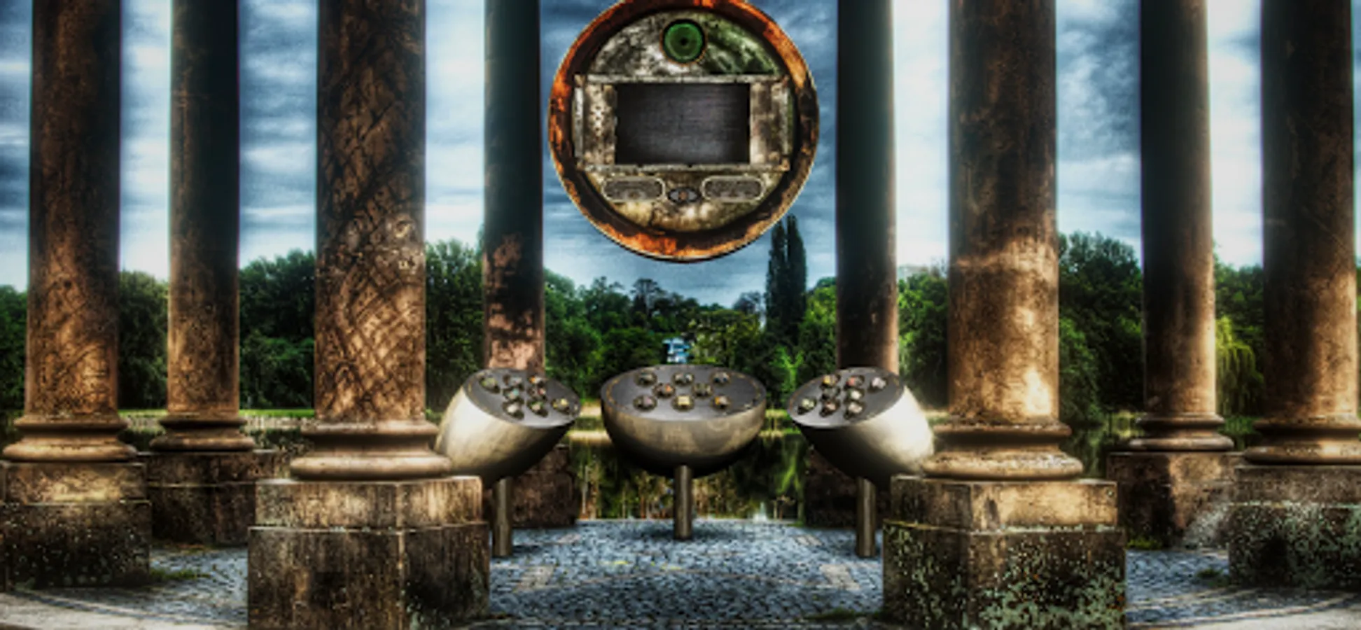 it's done: Meirion finally managed to deconstruct Onya Kruger's famous puzzle machine, move its segments from her workshop to the park and rebuild it at the lake pavilion.