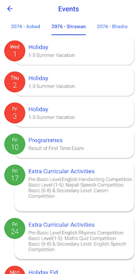 Notice / Events : All the notice and events such as exam, parents teachers meet, holidays, fee bills and due dates will be listed in this app. Guardian will be notified promptly for every important events. Guardian can also view the academic calendar.