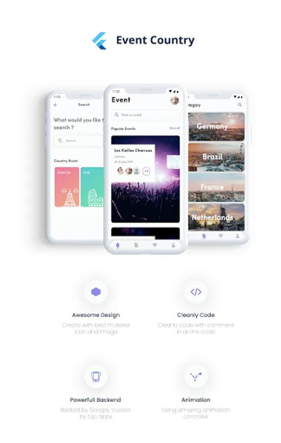 Event Country using Flutter can be use for event management application in android and ios device, It’s easy to setup and get started. This will save 1000+ hours of your development time for create UI, frontend and backend.