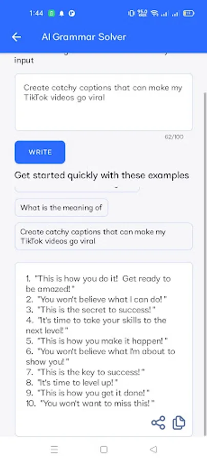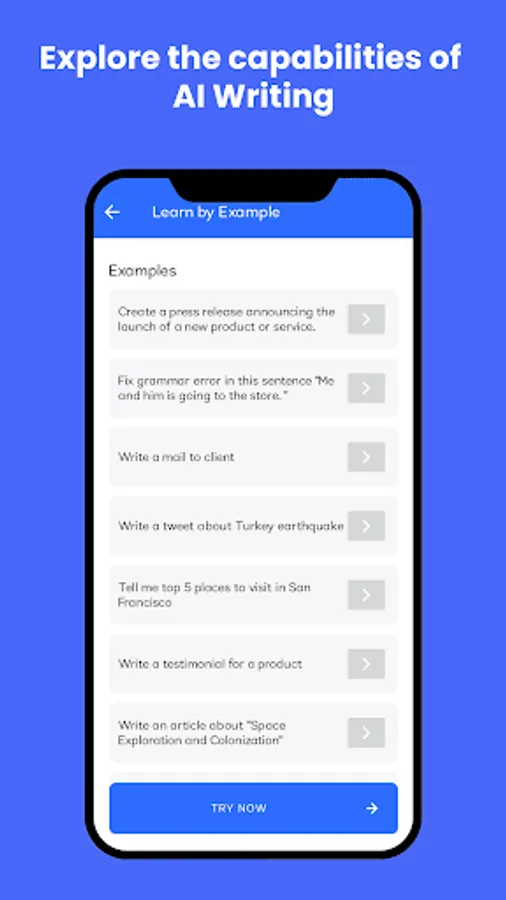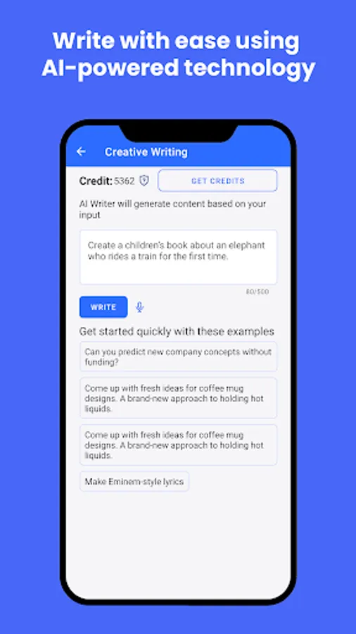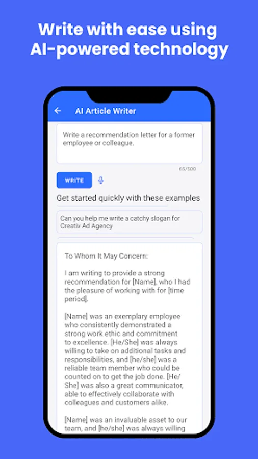 With AI Writer, you can generate ideas and brainstorm new topics, all while benefiting from advanced natural language processing algorithms that analyze your writing style and suggest improvements. Whether you're writing fiction, non-fiction, or blog posts, our app provides a range of writing prompts and templates to help you get started.