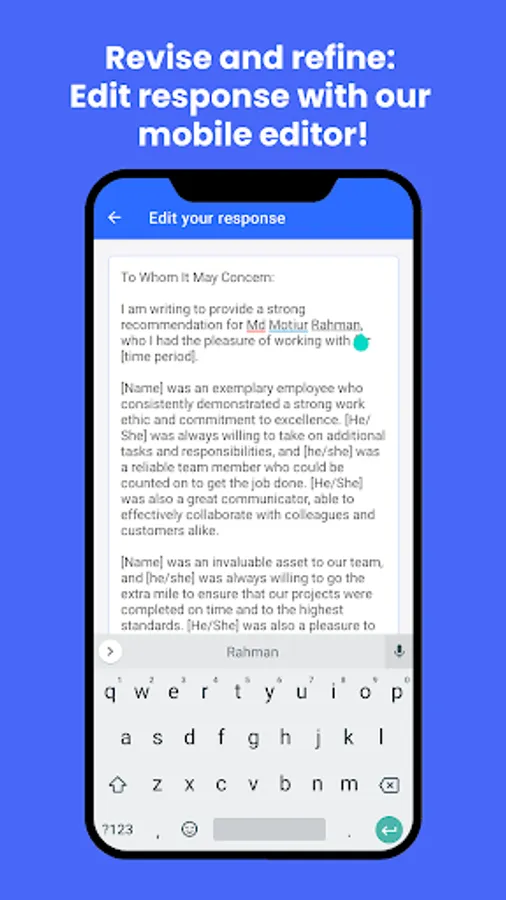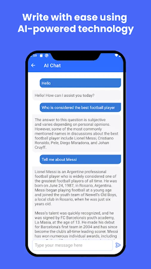 AI Writer is designed with an intuitive user interface that's easy to use, so you can focus on what really matters – your writing. Whether you're a seasoned professional or just starting out, AI Writer by ChatGPT is the perfect tool to take your writing to the next level. Download the app today and start creating your best work yet!
