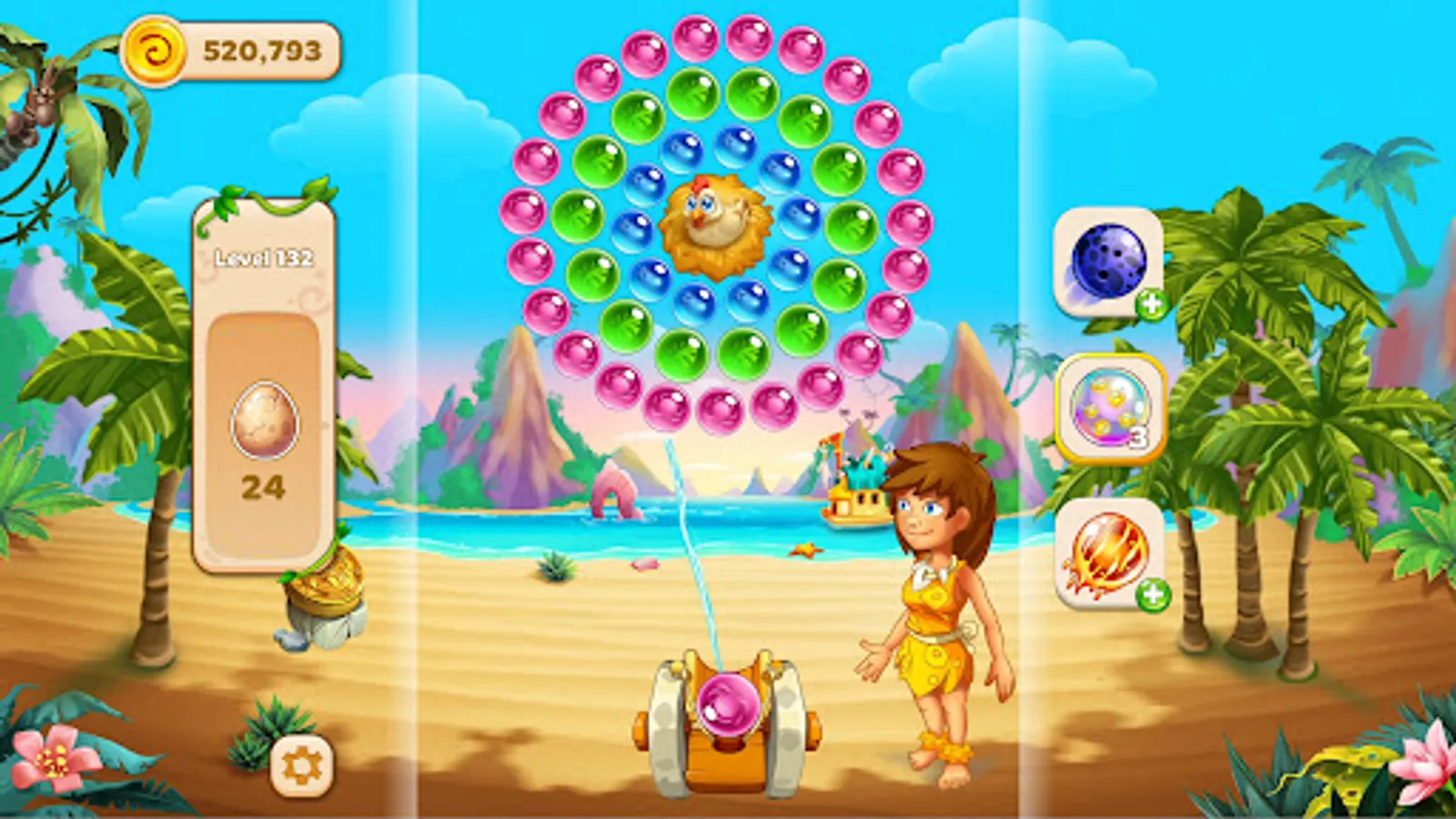 Help the prehistoric family build a new home, find food, and turn this uncharted volcanic island into your very own island paradise, in this exciting puzzle blasting adventure. Travel back in time bursting as many bubbles as you can in this free bubble popping puzzle game.