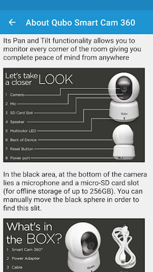 Qubo Smart Camera 360 stores videos offline in SD card and is stored online with qubo app. The Indian company has created an advanced feature device that offers good image quality. This app, in which the features Qubo Smart Cam 360 are explained, is a guide.