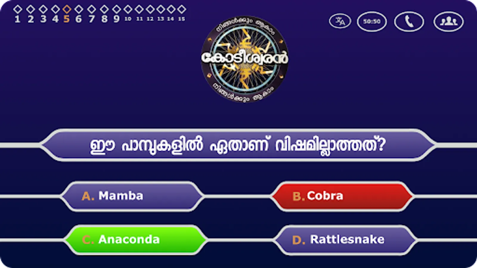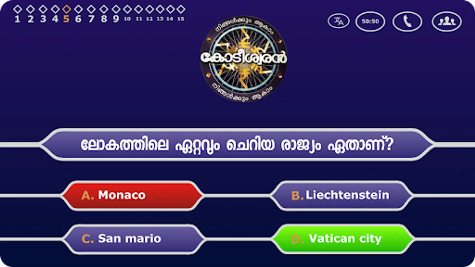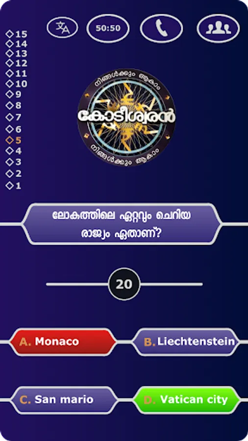 A malayalam trivia game.