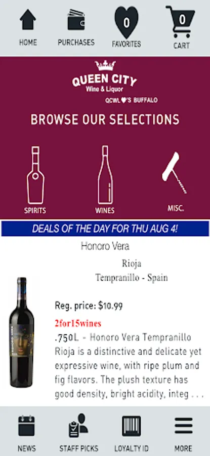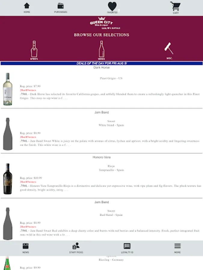 Have access to browse our entire inventory of in-stock wine and spirits from anywhere! See what's in stock with pricing, make purchases in the app, save favorites, snap a photo of a great wine or spirit for later recall, scan the app at checkout for Rewards Program, see past purchases, review staff picks, and more!