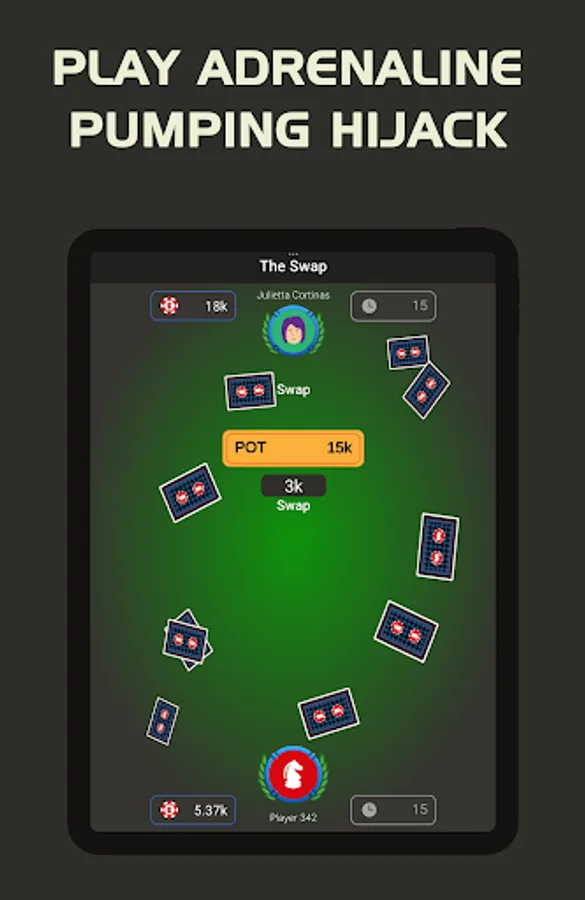Hijack: Go all-in from the start with this super-sly, super-fast chess format. Buy special privileges to tilt the game in your favour: swap hands: switch cards, spy on your opponent's hand and freeze the timer. This is all or nothing, dirty tricks chess.