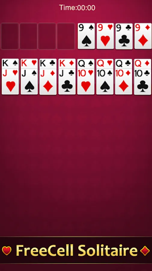 Win a game by creating four stacks of cards, one per suit. The secret of winning is the extra four cells!