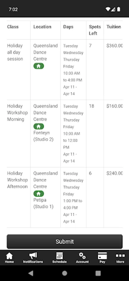 QDC's app offers a range of features to enhance the dance experience for students, including easy access to class schedules, class descriptions, and important announcements from the studio. Students can also use the app to register for classes, view their attendance history, and make payments for classes and merchandise.