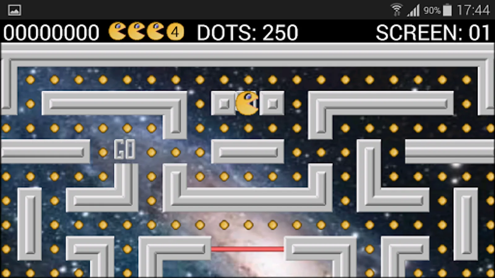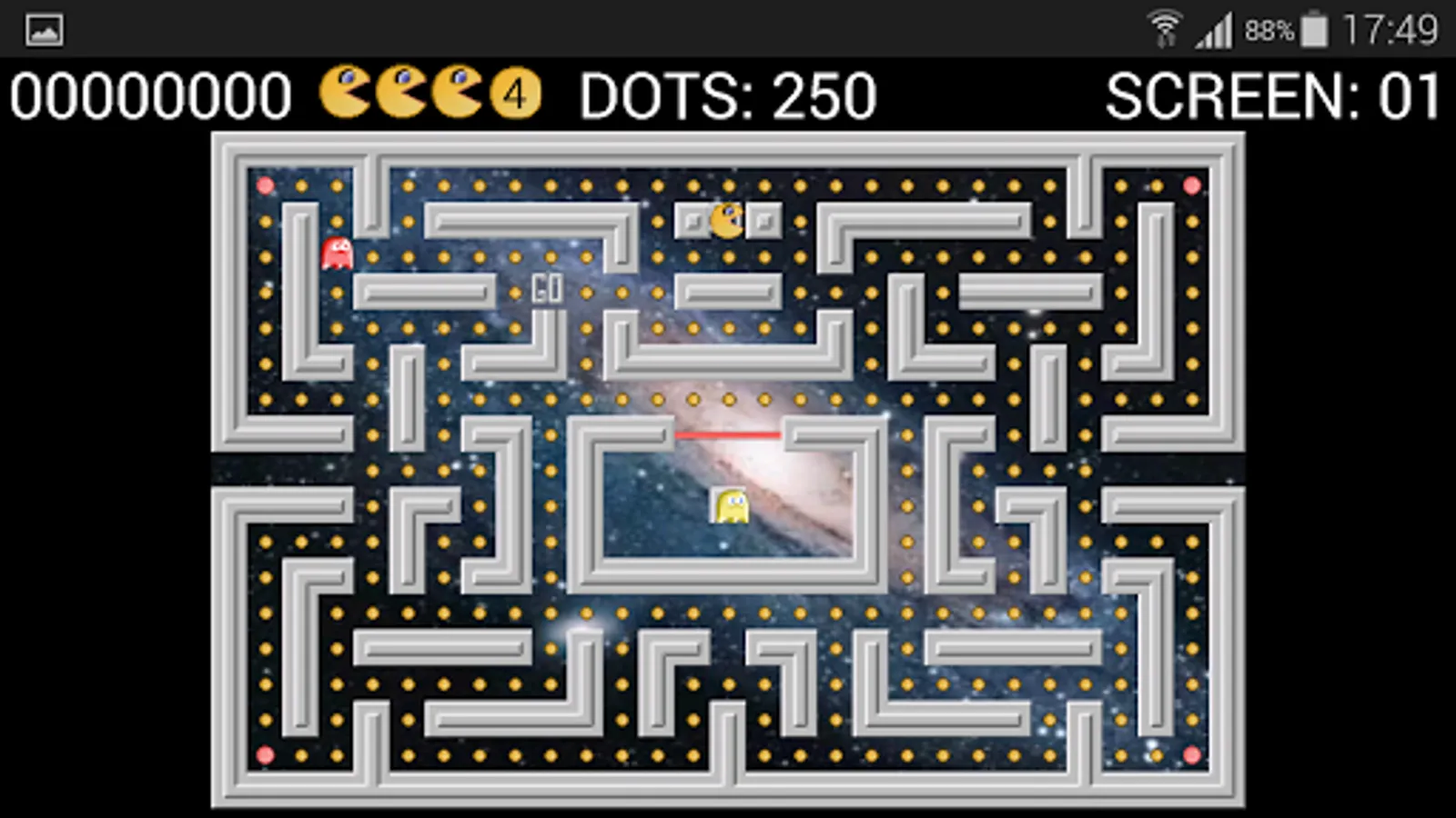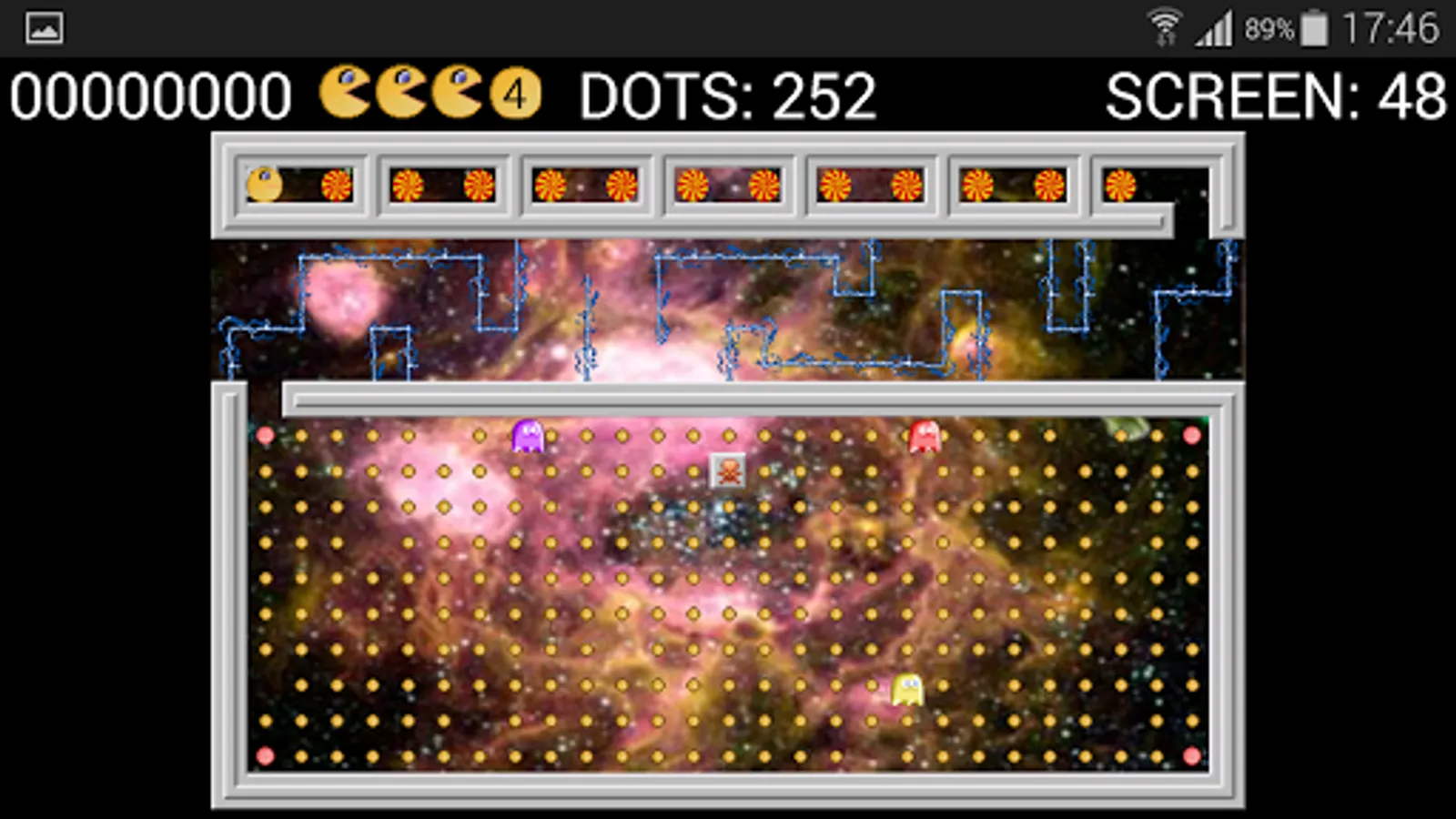* To overcome the screens, the QUELMAN must eat all the dots and avoid being caught by the ghosts and dodging danger zones.