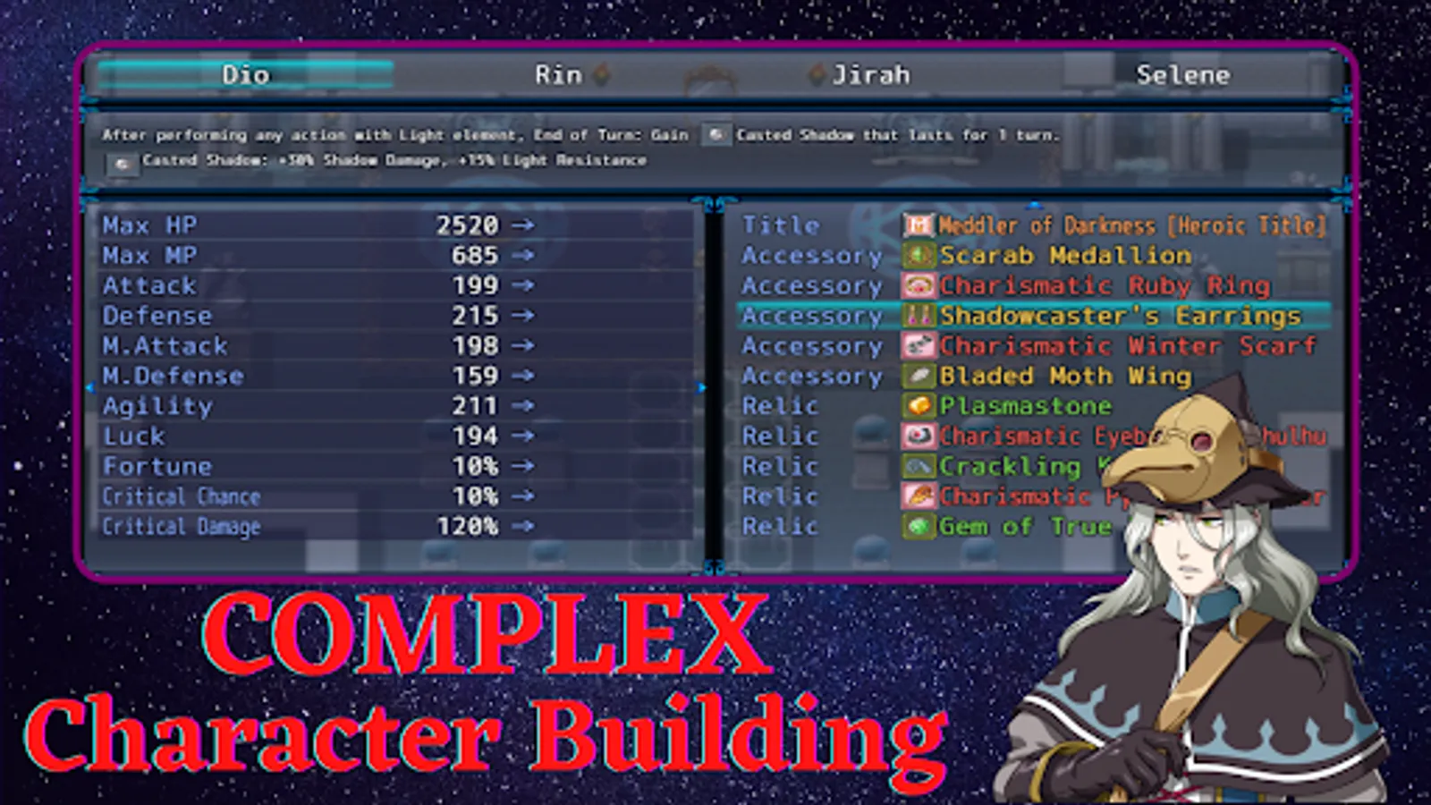 Adding to complex character building are over 260+ unique items to choose from. No item just powercreeps others; all of them have their own uses, making your every choice matter. And over 100+ of those items are upgradeable. You can combine two of the same items to upgrade the rarity! Items have their very own unique passive effects, and each character can equip up to 10. That's like adding 10 passive effects to each of your four characters!