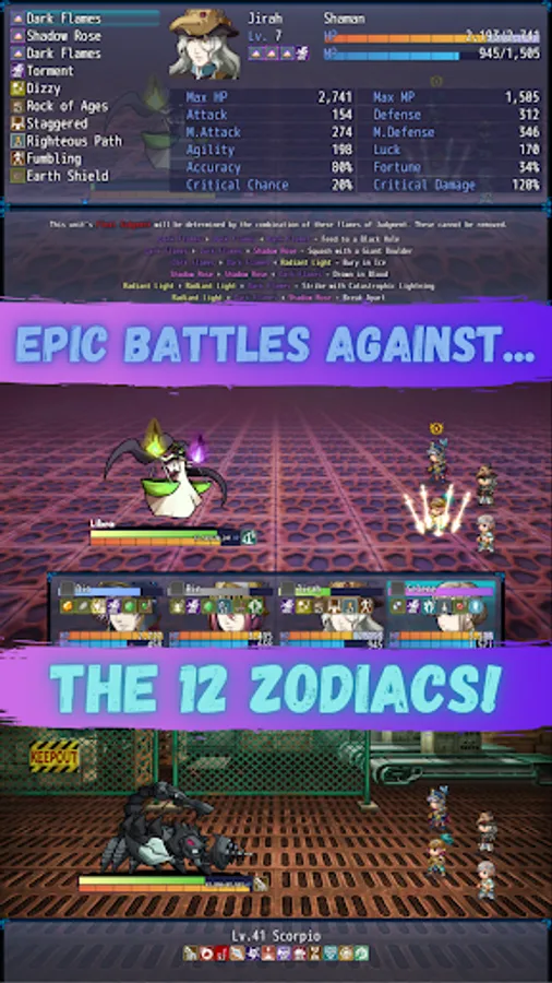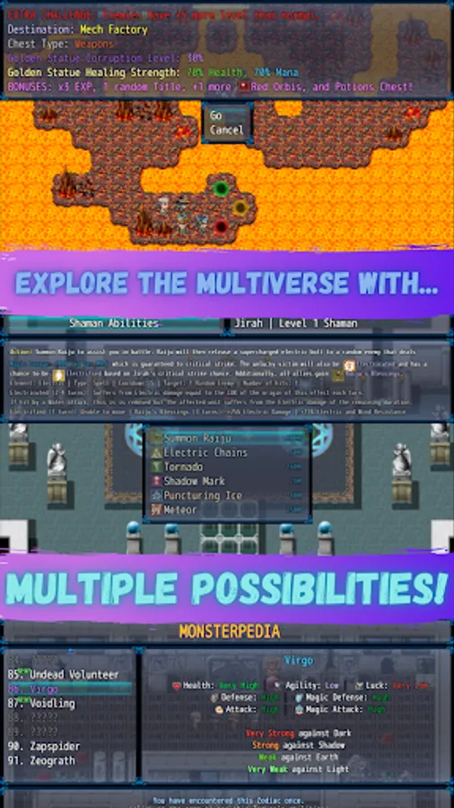 Each adventure, you control four characters and traverse through portals that will lead you throughout the multiverse to battle with the 12 Zodiacs and 80+ other unique enemies. Lose once, and your adventure will be over. Can you make it to the final boss without losing?