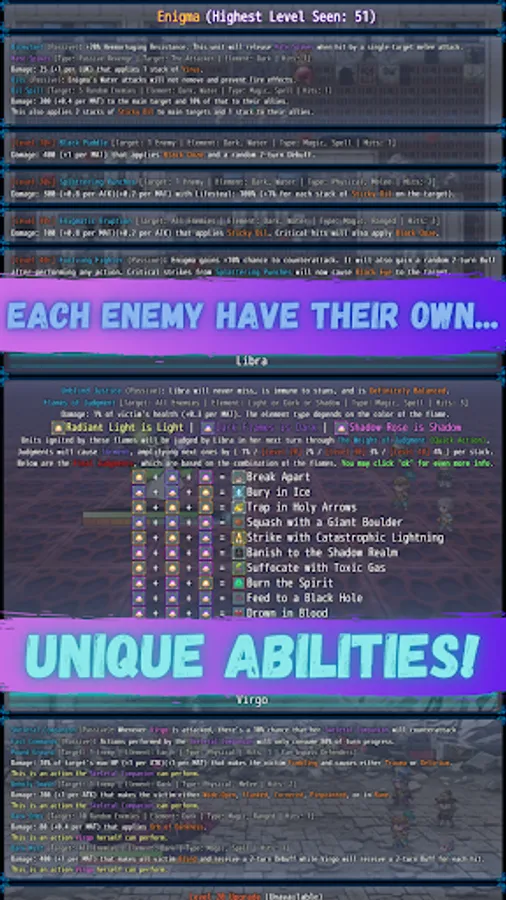 Enemies don't just brainlessly attack; their AI is merciless! Each one has their own unique set of passive and active abilities too, adding another layer of complexity to every battle! Some enemies are special, and some even have mechanics that bend the rules of the game!