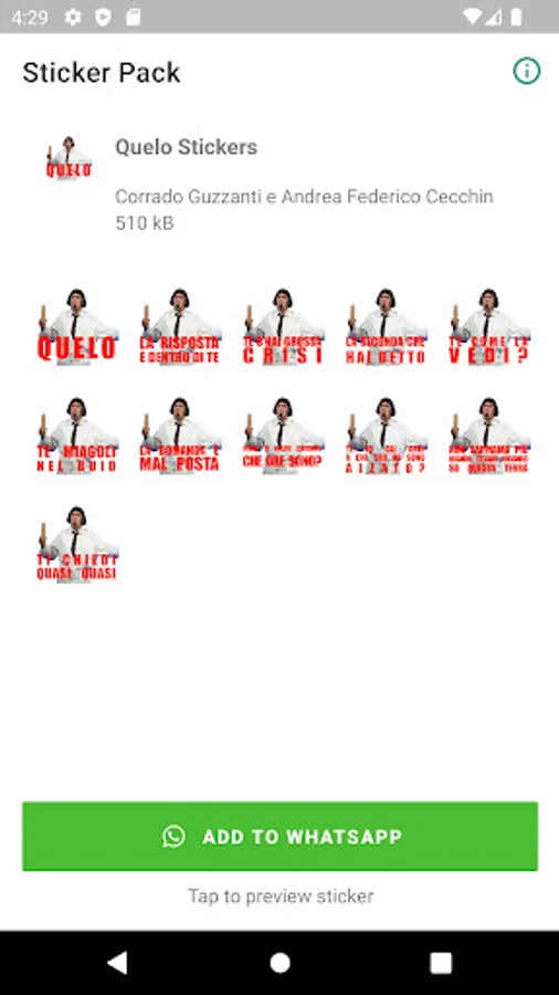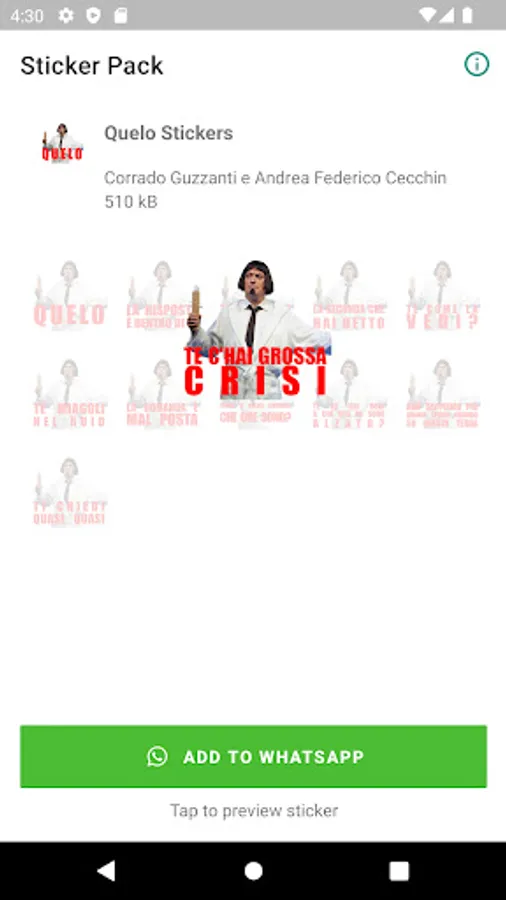 You have a big crisis! So download this fantastic sticker pack of Quelo, one of the most loved characters of the legendary Corrado Guzzanti.