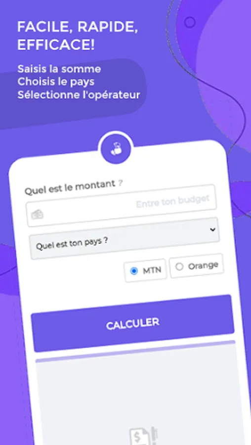 With the app, all you have to do is enter your amount and your country, then choose an operator!