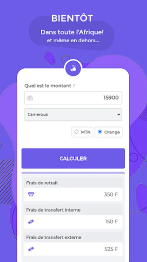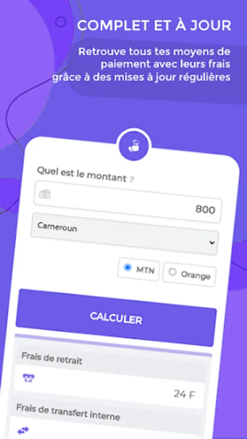 Basically, the application lists the fees for withdrawal, deposit, transfer, etc. on different operators and payment services such as: Orange Money, MTN Mobile Money, Moov Money, Airtel Money, etc. And this, in several African countries like Cameroon, Mali, Senegal, Burkina Faso, Niger, and Ivory Coast for the moment! All the other countries will arrive as we go!