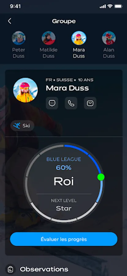 Visualization and management of course planning and activities in real time. Student Profiles Track student athletic progress and all relevant information. Assessment Ability to assess student progress from the app. Communication Direct communication between the school and the students thanks to the integrated chat
