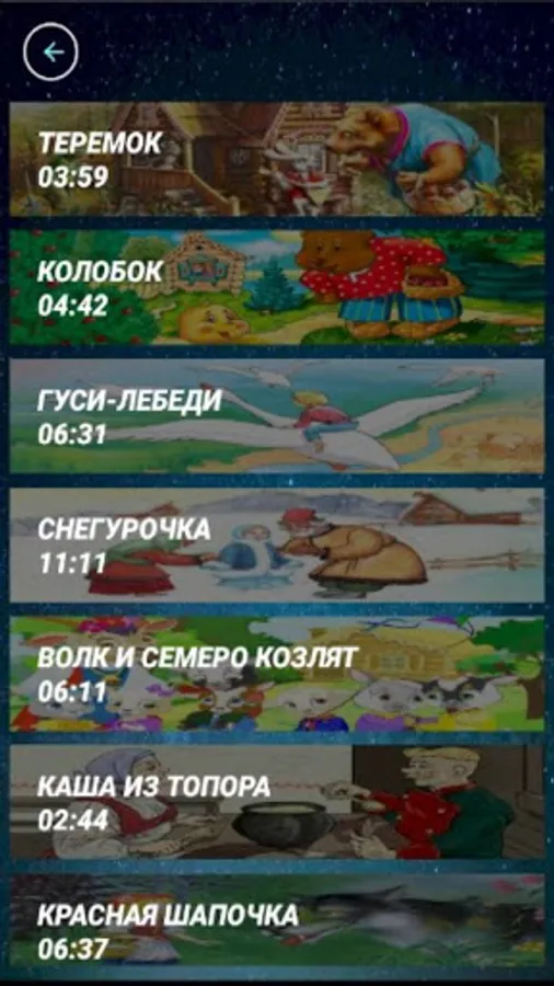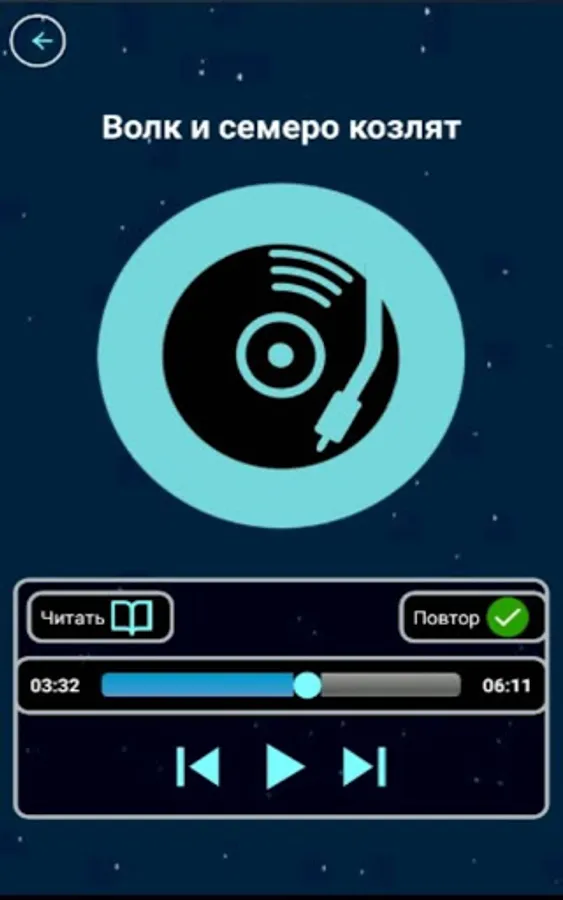 Convenient control for a child and the ability to listen to fairy tales in the background, as well as all audio fairy tales can be listened to without the Internet and completely free of charge.