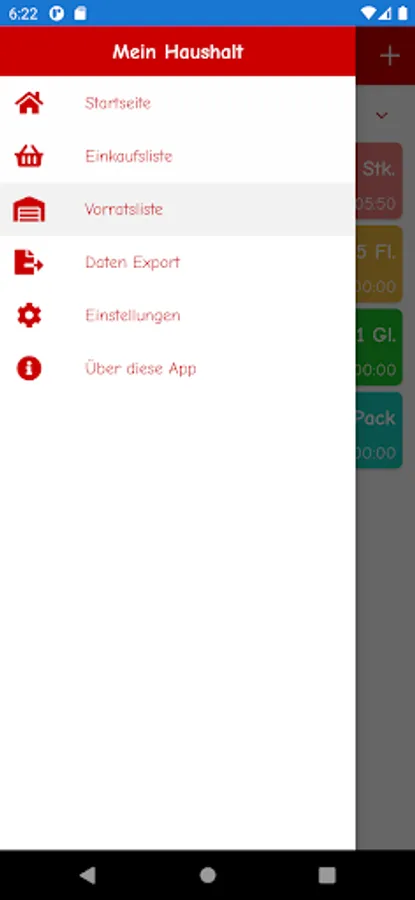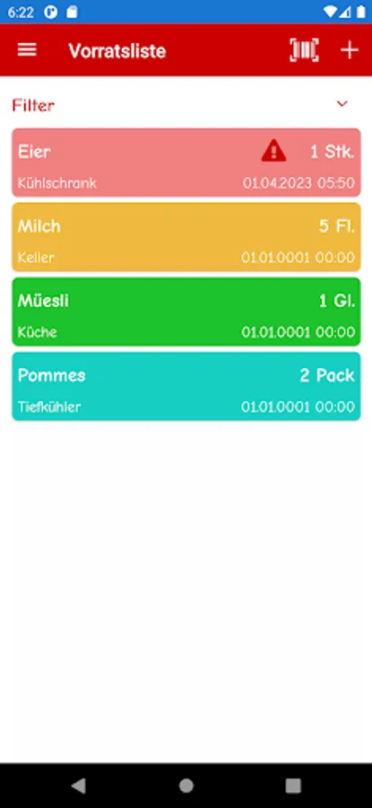 * Inventory list according to freely definable storage locations such as kitchen, refrigerator, etc.