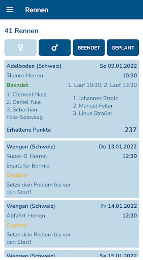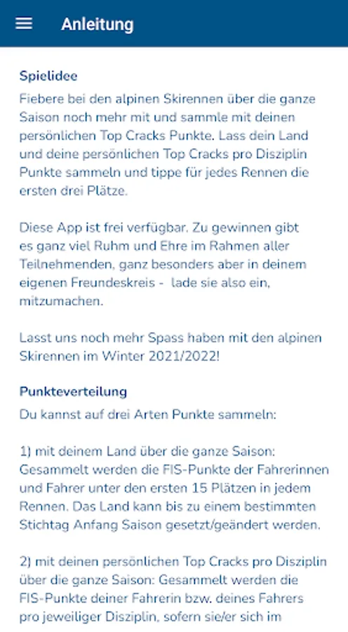 Get even more involved in the alpine ski races throughout the season and collect points with your personal top cracks. Let your country and your personal top cracks collect points per discipline and bet on the first three places for each race.